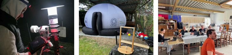 Soirée étoilée avec les foyers ruraux à Belloy-sur-somme. Montage du planétarium à Clermont durant l’anniversaire des 400 ans de Cassini. Nous nous sommes installés dans l’hôtel de ville dans la salle Grévin dont on a enlevé les lustres. Au cours de cette période, ce sont donc plus de 700 personnes qui se sont installées sous notre dôme, pour un public de 3 à 92 ans.