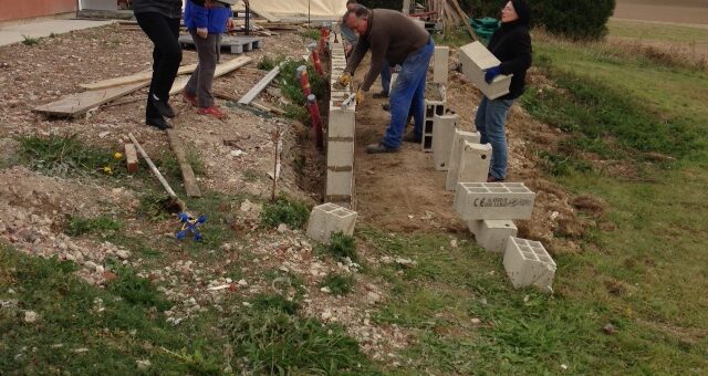 Samedi 1er Octobre à partir de 9h00, Christian, Eddy et Claude attaquent le bétonnage des fondations du muret de la terrasse...