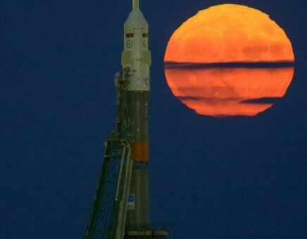A Baïkonour ce 16 novembre, à la veille du lancement, les 3 astronautes Peggy, Oleg et Thomas Pesquet de l’expédition 50...