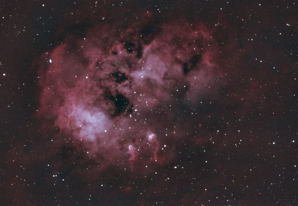 L’ensemble dégage une impression de voile incandescent suspendu dans l’espace, typique des grandes nébuleuses en émission, et met particulièrement en valeur la finesse des structures malgré la très faible brillance de cet objet.