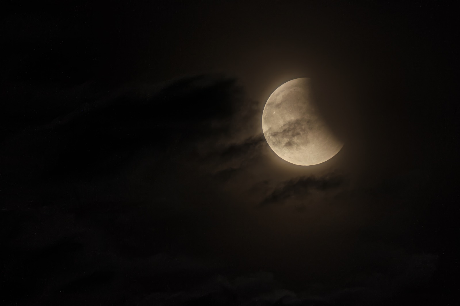 Malgré un ciel bien bouché voici mon unique image de l’éclipse de Lune du 7 Septembre capturée entre deux nuages.