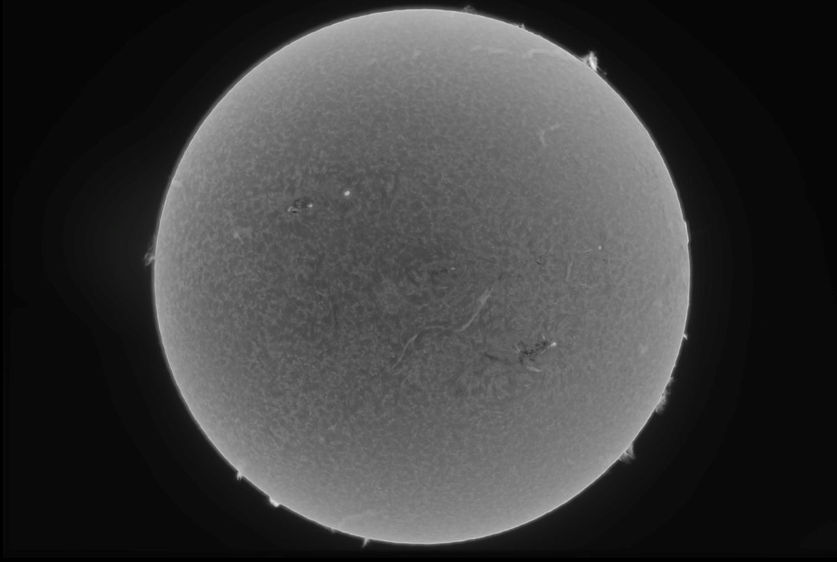 Voici quelques observations solaires réalisées ce Dimanche 7 Septembre, en calcium K, en h Alpha, ainsi qu’une animation de 196 images, chacune constituée d’une vidéo de 5 secondes avec intervalle de 45 secondes.