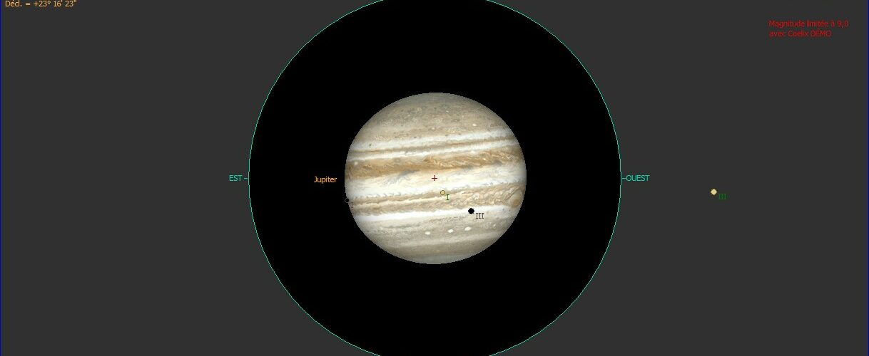 Premier contact à 19h08 avec l’ombre de Ganyméde sur Jupiter: