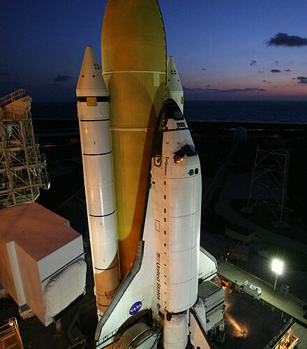 – Atlantis est exposée au Centre spatial Kennedy à Cap Canaveral, en Floride, à côté de son pas de lancement.