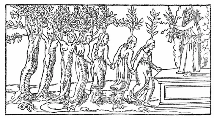 Les Héliades, sœurs de Pheaton, prostrées sur sa sépulture, pleurent sa disparition et implorent son retour. Puis prennent racine, deviennent peu à peu arbre. On dit qu’elles se transformèrent en peupliers ou en aunes. Clymène, leur mère, souhaitant les arracher de ce funeste sort, ne fait qu’aggraver leur mal :