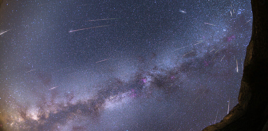 La précédente pluie de météorite des Perséides arrivée à proximité d’une nouvelle lune a eu lieu en 2013. C’est cette année-là que les photos qui composent l’image ci-dessus ont été prises pendant la nuit sans lune, depuis l’île de Hvar sur la côte de la Croatie. La composition de la photo compte 67 trainées de météorites qui viennent de la constellation de Persée, où se trouve le radiant de la pluie de météorites, prises pendant la semaine du 8 au 14 août 2013, et collé sur le fond d’une faible lumière zodiacale et de la Voie Lactée.