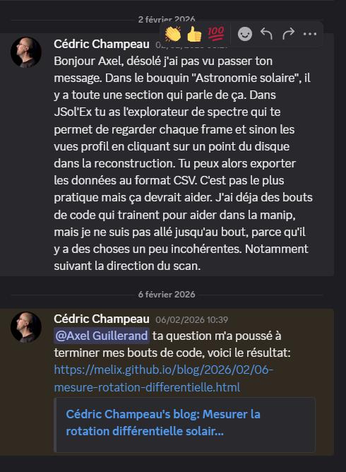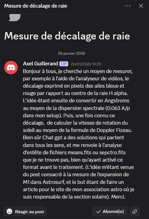 J’ai donc posé la question suivante sur le Discord du logiciel JSol’ex, dont j’ai déjà parlé :