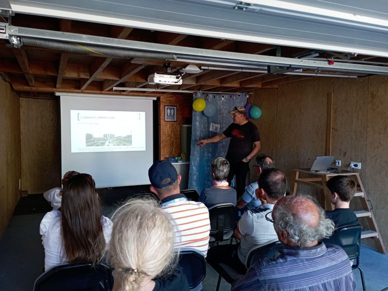 L’accueil est très convivial, Gilles SAUTOT nous fait visiter l’observatoire et sa magnifique lunette de 152mm d’ouverture pour une focale de 2400mm avant de faire sa conférence.