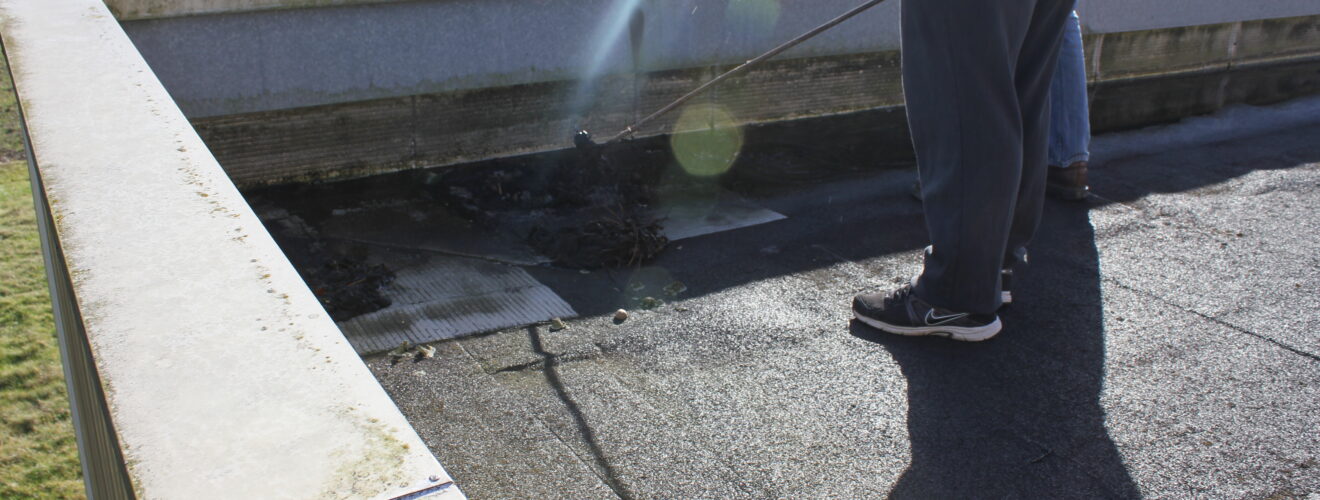 On a vérifié l’état du toit pour prépare la sortie du tuyau du poële et on a débouché le regard d’évacuation pour éviter les inondations possibles