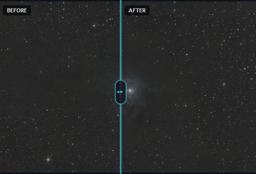 Mais aussi, après avoir cliqué sur le bouton « Denoise » à la fin du process, vous noterez qu’une barre verticale sera présente sur la fenêtre de prévisualisation. Cela permet de voir le avant (à gauche) / après (à droite) en déplaçant la barre de droite à gauche.